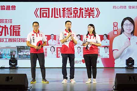 【特訊】第11組同心協進會昨(三日)晚在友誼廣場舉行競選宣傳活動,候選人梁孫旭和李靜儀要求政府藉賭牌重新競投的契機,致力讓社會及居民分享博彩業發展的成果,支持本地經濟發展,更好地關顧民生,完善博彩從業員的就業環境和職業發展空間,並呼籲疫下博企力保本地員工「飯碗」。