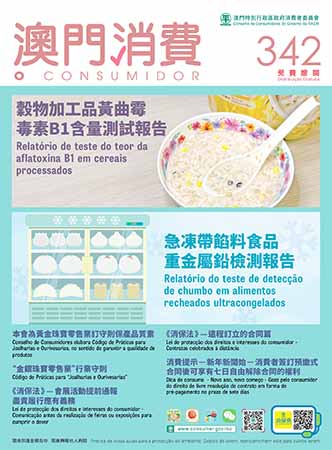 【特訊】消費者委員會出版的第342期《澳門消費》公佈穀物加工品的黃曲霉毒素抽查結果,以及急凍帶餡料食品含鉛量測試報告,測試結果顯示,以上兩類食品樣本全部合格。新一期《澳門消費》繼續以專文介紹第9/2021號法律《消費者權益保護法》。